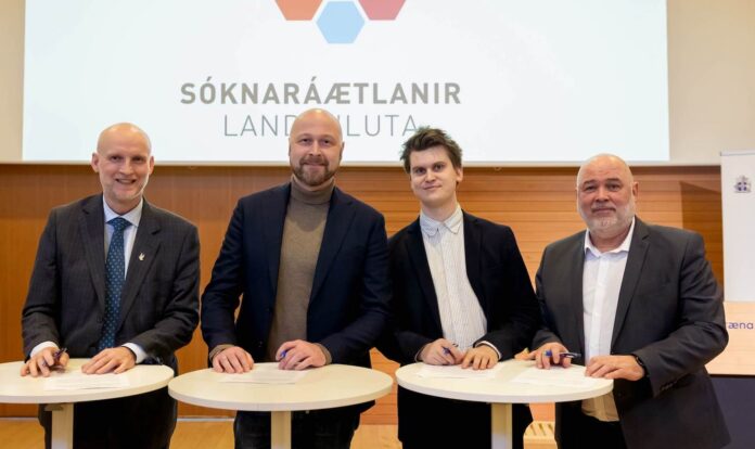 Eyjólfur Ármannsson, samgöngu- og sveitarstjórnarráðherra, Logi Einarsson, menningar-, nýsköpunar- og háskólaráðherra, Jóhann Páll Jóhannsson, umhverfis-, orku- og loftslagsráðherra og fulltrúar landshlutasamtakanna undirrituðu samningana í Norræna húsinu.