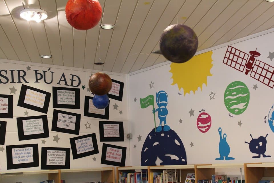 Heiðurinn af skreytingunum á listakonan Rakel Sif Ragnarsdóttir sem einnig starfar á bókasafninu.