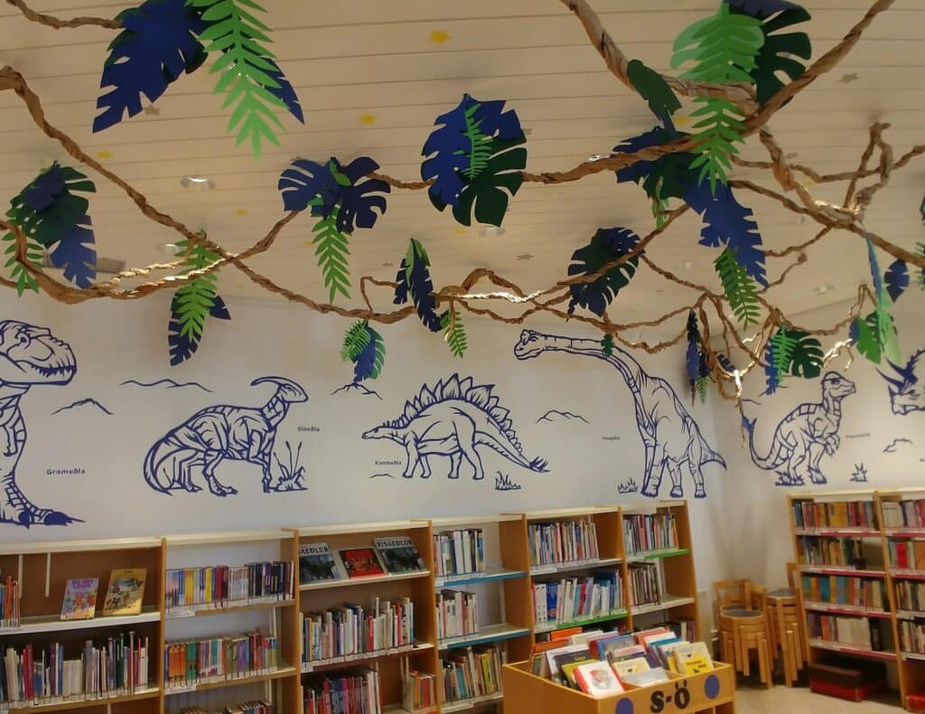 „Í sumarlestrinum er ákveðið þema hvert ár og er þá reynt að gera einhverskonar tilbreytingu, tengt þemanu. Árið 2014 var ákveðið að hafa Múmín-þema en var þá ekkert til, tengt því þema, til þess að skreyta veggina með en það var til fullt af pappír. Þannig kviknaði sú hugmynd að nýta pappírinn til þess að búa til skreytingar sem hentuðu þemanu,“ segir Rakel í samtali við sunnlenska.is.
