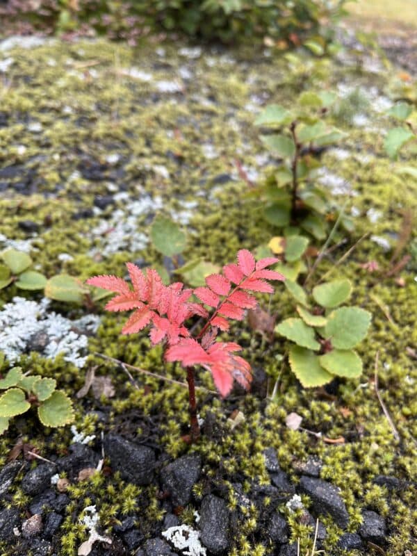 Í grýttan jarðveg bakatil í garðinum hafa ýmsar plöntur sáð sér og ætlunin er einfaldlega að fylgjast með þeim dafna. Í daglegu tali höfum við talað um þennan reit sem villigarðinn. Hér má þegar finna fjölskrúðugt líf, birki, reynivið, greni, krækiberjalyng, blóðberg, hreindýramosa og fleiri tegundir. Í hvert sinn sem hugurinn reikar í litla villigarðinn verður mér hugsað til þrautseigju og áræðni manna, dýra og plantna í harðneskju og átakanlegu umhverfi um veröld víða. Mér þykir hreint ótrúlegt hve seigla mannfólksins getur verið mikil í erfiðum aðstæðum og þess hve stóran sess ræktun, matargerð, menning og listir skipa í slíkum aðstæðum.