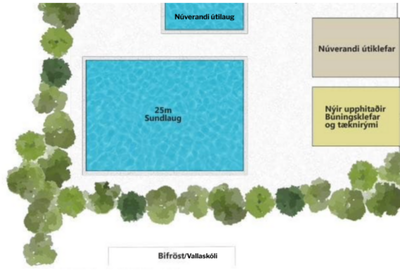 Samhliða uppbyggingunni þarf að reisa nýjan lagnakjallara með búnaði fyrir laugina og búningsklefa fyrir eldri nemendur grunnskóla. Þeir yrðu staðsettir sunnan við núverandi útiklefa og með sérinngang af Bankavegi. Framkvæmdatíminn er áætlaður um fjórtán mánuðir og er gert ráð fyrir að framkvæmdir hefjist seinni part næsta árs.