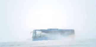 Strætisvagn fauk útaf