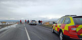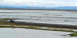 Skálm flæðir yfir þjóðveginn – Hlaupið kom með hvelli