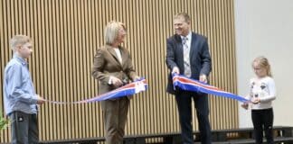 Borðaklipping og bjartur söngur við vígslu Stekkjaskóla