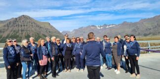 Sungið á tvíbreiðri brú yfir Steinavötn