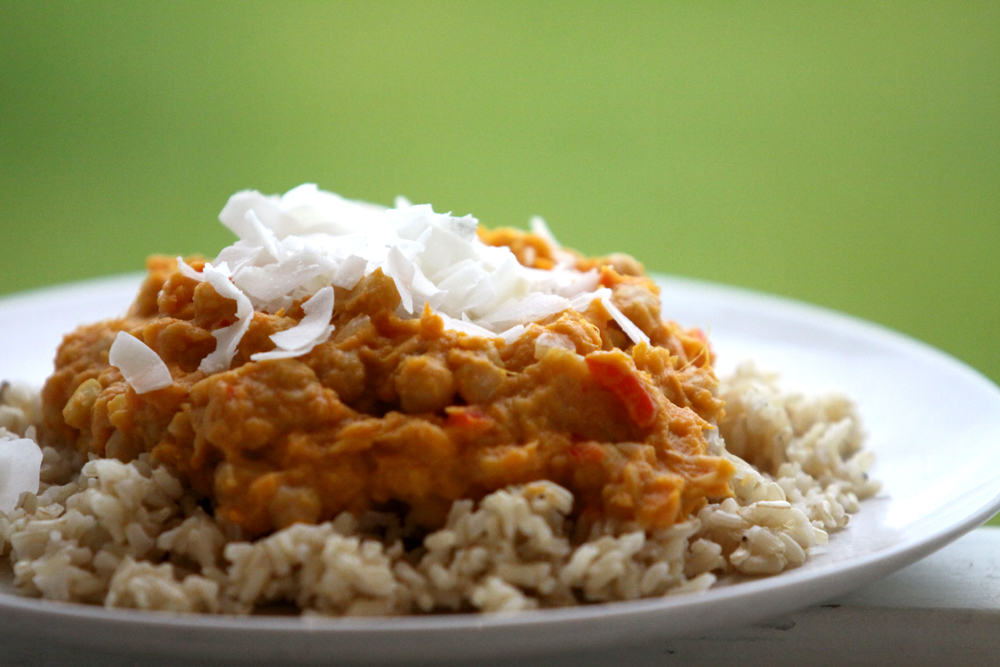 * Þegar allt hefur blandast vel saman (ath. að þið eigið ekki að stappa kjúklingabaunirnar – ekki nema þið viljið) þá er rétturinn tilbúinn.
