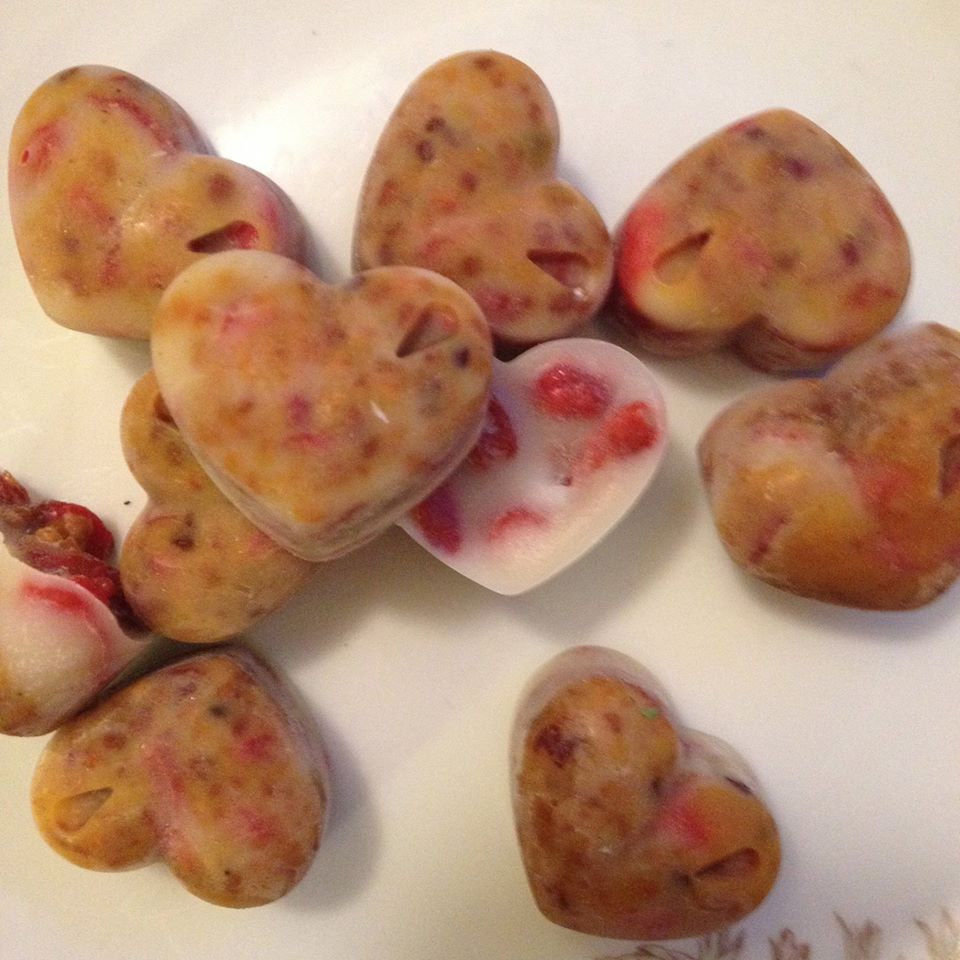 4. Blöndunni góðu er nú skellt með teskeið í formin og þau sett í frysti og eftir u.þ.b. 20 mínútur eru þessir litlu ljúfu næringarríku molar tilbúnir. Best er að geyma þá í frysti þar sem kókosolían bráðnar fljótt við stofuhita.