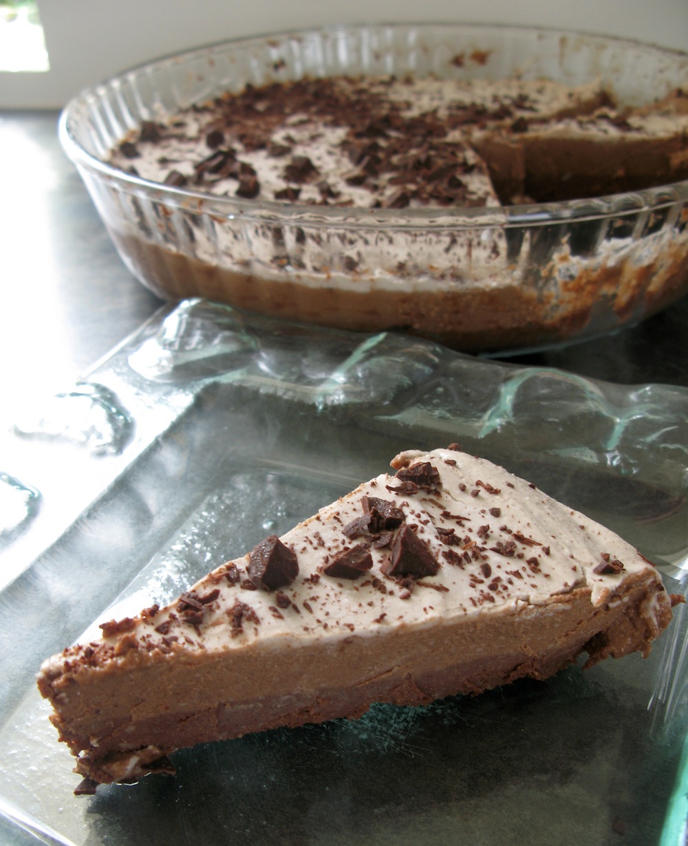 Blandið öllu mjög vel saman í matvinnsluvél, með töfrasprota eða í blandara. Þegar blandan er orðin silkimjúk hellið henni þá á botninn og setjið kökuna aftur inn í frysti.