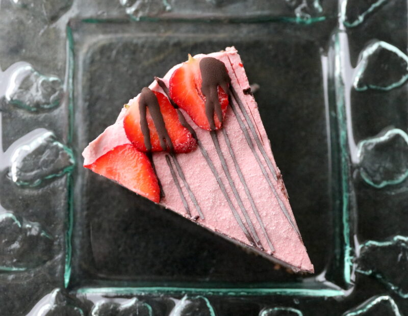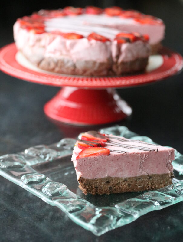 FAGURGERÐI – MATUR // Þessi hrákaka er bæði falleg og bragðgóð. Já, og svo auðvitað alveg svakalega holl. Það þarf enginn að hafa samviskubit yfir því að fá sér eina sneið af þessari þegar manni langar í eitthvað sætt.