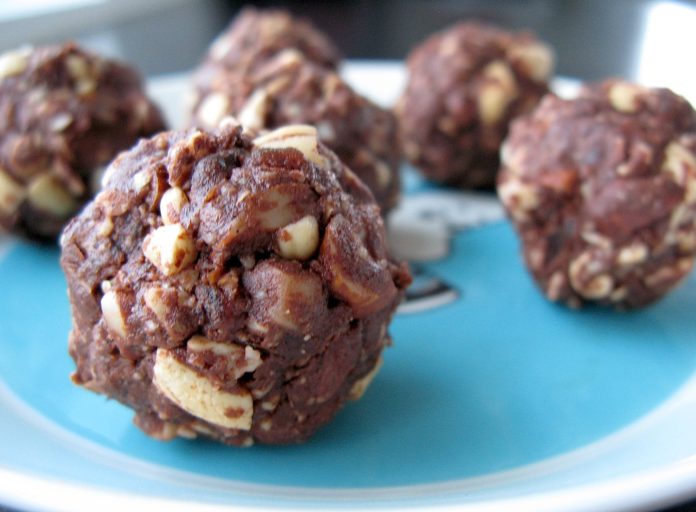 6. Setjið kúlurnar inn í ísskáp og geymið í smá stund – eða byrjið bara strax að borða. Það þarf ekki að geyma þessar kúlur í frysti ekki frekar en þið viljið. Reyndar efast ég um að þið getið geymt þessar kúlur lengi – þær eru nefnilega fljótar að hverfa ofan í maga.