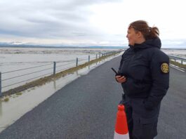 Skálm flæðir yfir þjóðveginn – Hlaupið kom með hvelli