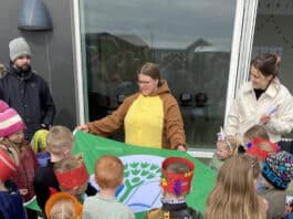 Grænfáninn dreginn að húni við Goðheima