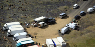 Leitað að fólki á öskusvæðinu