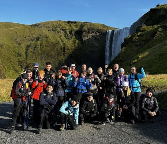 Krakkar úr Hvolsskóla ganga yfir Fimmvörðuháls