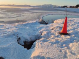 Slapp við illan leik eftir að hafa fallið niður í gjá