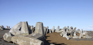 Dólosum raðað upp við útsýnisstað