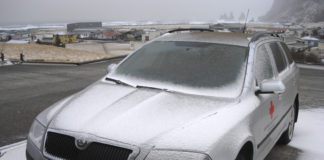 Snjóbylur undir Eyjafjöllum