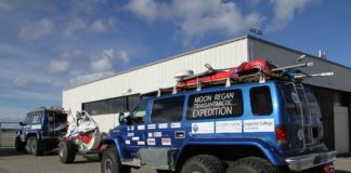 Snjóruðningstæki sat fast