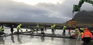 Steypt slitlag á brú yfir Steinavötn