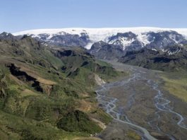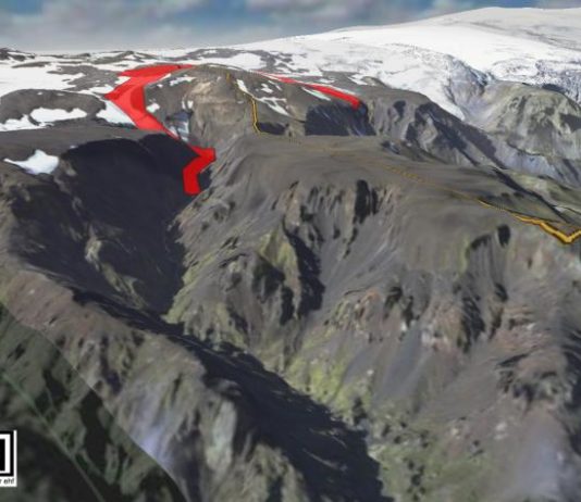 Hraunið rennur á víxl í gilin