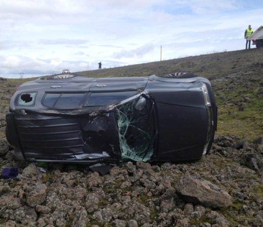 Bílvelta og aftanákeyrsla á Hellisheiði