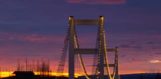 Hvítárbrú glæsileg í ljósaskiptunum