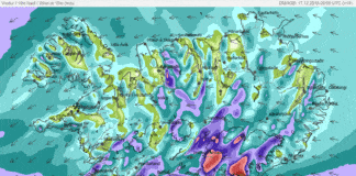 Austanstormur með kvöldinu