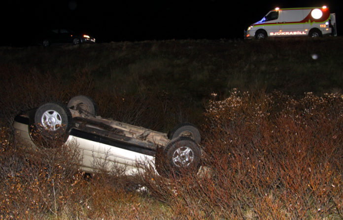 Laus fyrir miðnætti valt jepplingur út af Biskupstungnabraut, rétt fyrir ofan Þrastalund. Bíllinn var á ferð upp Grímsnesið og valt niður háan vegkant. Fjórir voru í bílnum og er talið að ökumaðurinn hafi rifbeinsbrotnað auk þess sem hann kenndi eymsla í hálsi. Fólkið var flutt til Reykjavíkur á slysadeild Landspítalans.