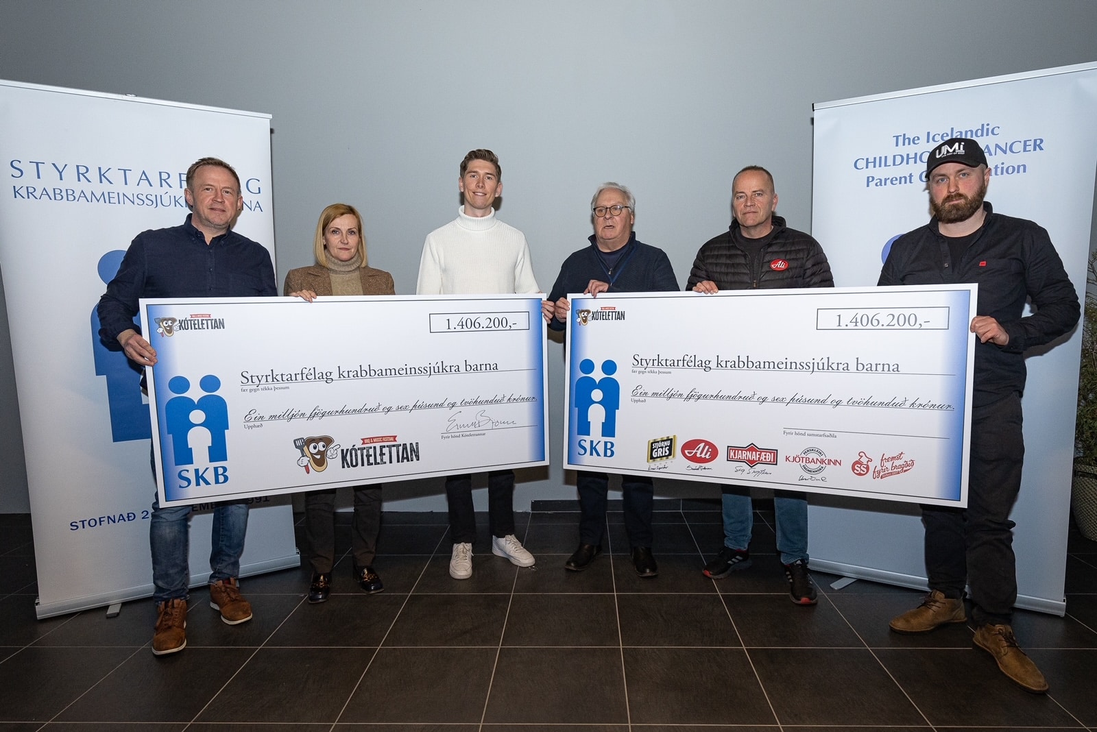 Helmingurinn af upphæðinni eða 1,4 milljónir er afrakstur kótelettusölu og Einar Björnsson, skipuleggjandi og forsvarsmaður Kótelettunnar, afhenti SKB síðan sömu upphæð í vikunni að viðstöddum fulltrúum styrktaraðila en Einar ákvað á síðasta ári að hátíðin myndi tvöfalda þá upphæð sem kæmi út úr styrktarlettusölunni svokölluðu.