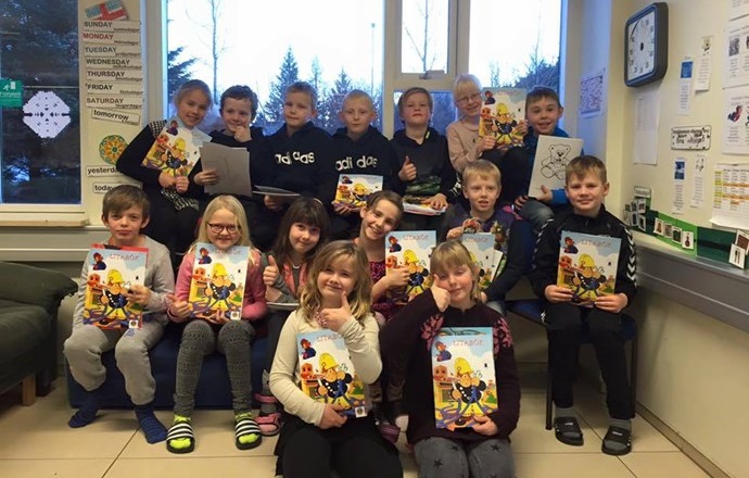 Hver nemandi var svo leystur út með gjöfum, meðal annars myndskreytta sögu um slökkviálfana Loga og Glóð og vasaljós. Nemendur svara svo spurningum upp úr sögunni. Svörin við spurningunum verða svo send í samkeppni á vegum LSS í von um að verða dregin út.