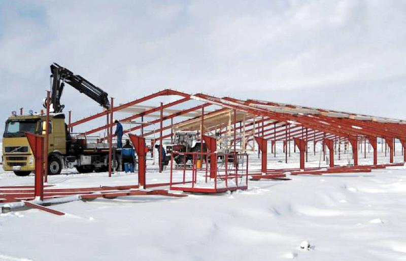 „Það gengur mjög vel, hér er fullt af smiðum og iðnaðarmönnum að vinna við að koma húsinu upp enda ætlum við að taka það í notkun um mánaðarmótin júní/júlí í sumar,“ segir Björn Harðarson, bóndi í Holti í Stokkeyrarhreppi.