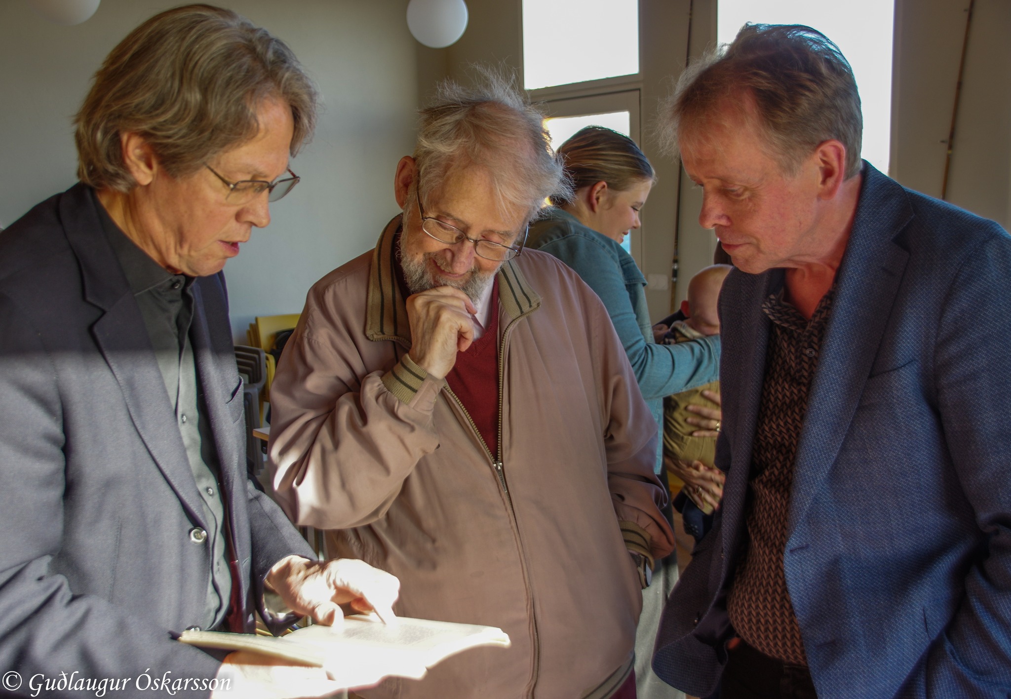 Steingrímur Jónsson, þáverandi forstöðumaður safnsins, og Heiðrún Dóra Eyvindardóttir, forstöðukona safnsins í dag, heiðruðu samkomuna og höfðu meðferðis nokkrar merkar bækur úr safninu, sem Steingrímur fór um fræðandi orðum auk þess að greina frá því, hvernig bókagjöfina bar að í starfi hans þann 5. október 1984.