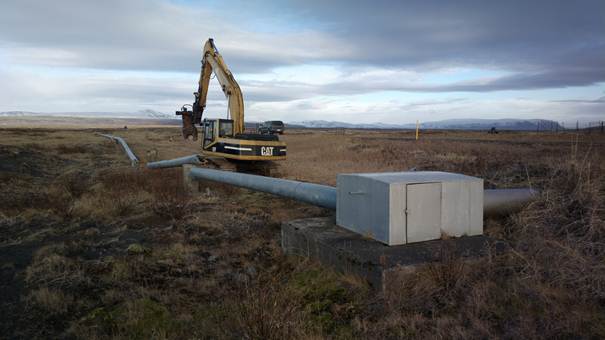 Þessa dagana vinnur Orkuveita Reykjavíkur að því að rífa syðsta hluta aðveituæðar hitaveitunnar sem liggur frá Hjalla í Ölfusi suður til Þorlákshafnar.