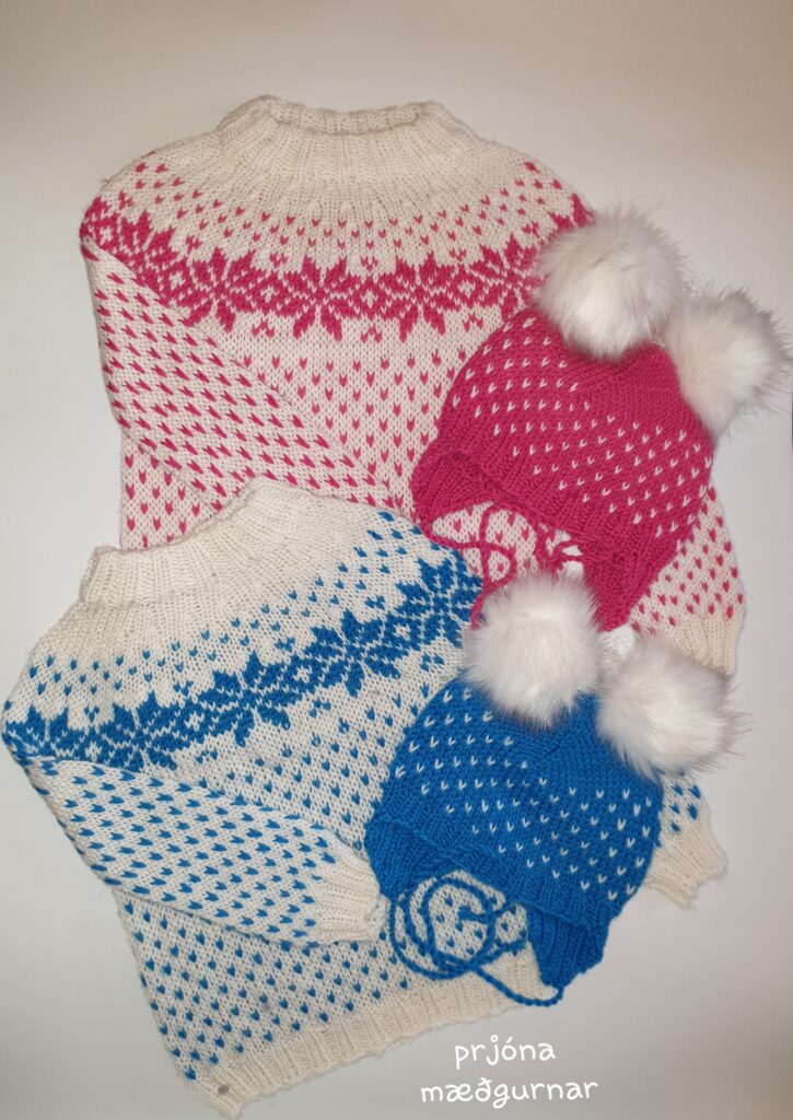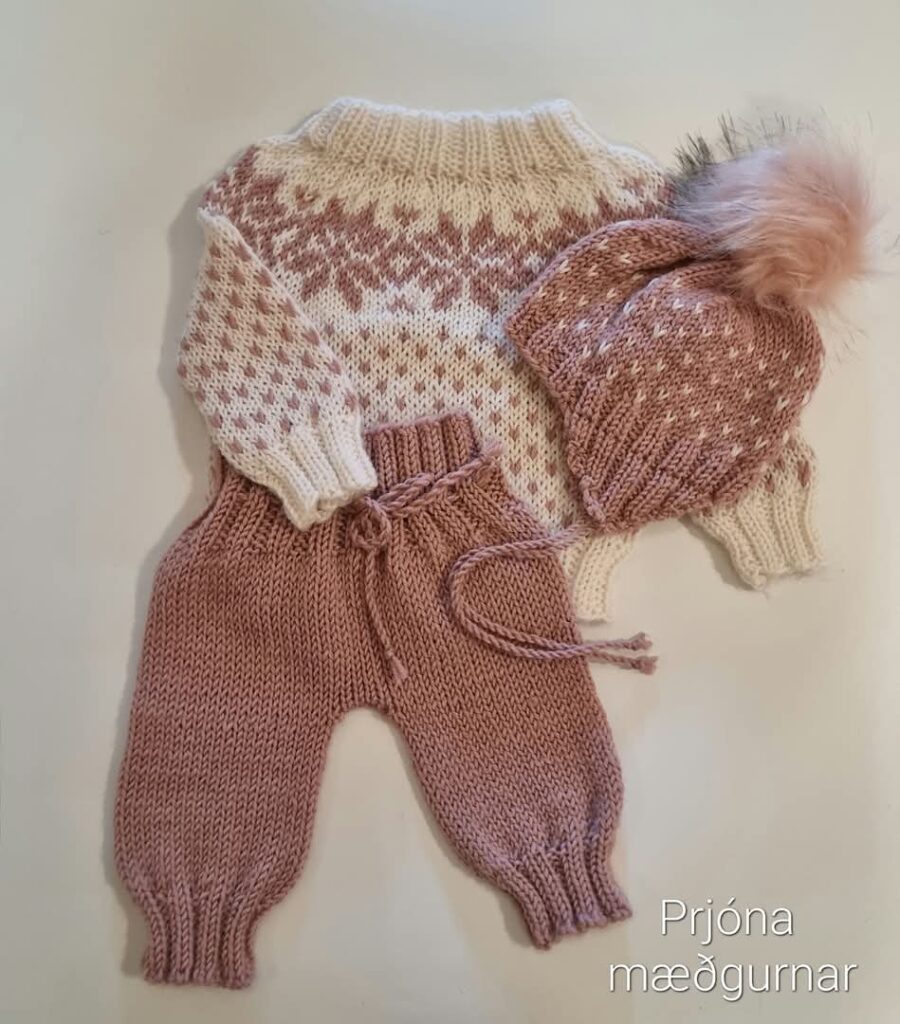 Bryndís prjónar undir merkinu Prjónamæðgur. „Mamma kenndi mér að prjóna og við ákváðum að slá í þetta verkefni saman. Hún hjálpar mér að prjóna því eftirspurnin varð mikið meiri en ég bjóst við við. Við erum búnar að prjóna saman í sirka átta ár.“