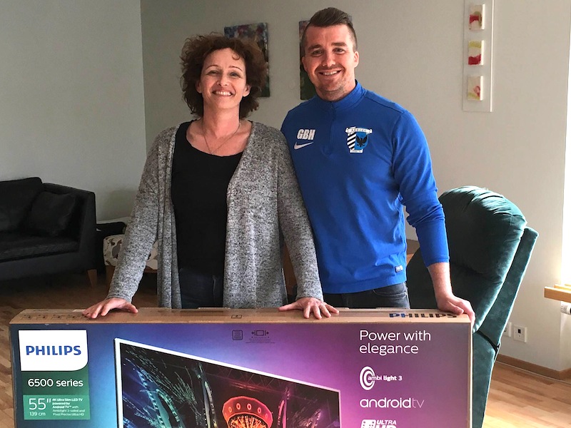 „Þetta gekk mjög vel hjá okkur og það er gaman að geta gefið eitthvað til baka til samfélagsins. Við erum stoltir af því að geta stutt við bakið á starfseminni hér í Álftarimanum,“ sagði Guðjón Bjarni Hálfdánarson, þjálfari Árborgar, þegar hann afhenti sjónvarpið.