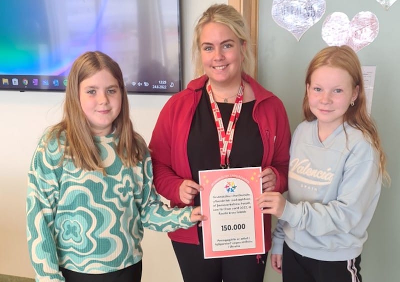 Þetta vorið var hagnaðurinn af verkefninu 150 þúsund krónur og var ákveðið að láta þá peninga renna til hjálparstarfs í Úkraínu í gegnum starf Rauða krossins. Það voru síðan nemendur í 7. bekk sem fengu þann heiður að afhenda peningagjöfina til fulltrúa Rauða Krossins en við það tækifæri fengu nemendur að heyra um hjálparstarf Rauða krossins.