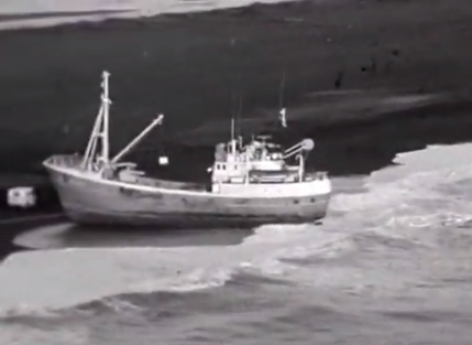 „Halkion VE 205 strandaði í Meðallandsfjöru 15. desember 1969 en Varðskipið Ægir dró hann af strandstað á gamlársdagskvöld um kl. 23 og sigldi hann inn í heimahöfn í Vestmannaeyjum að morgni nýjársdags. Fyrirtækið Björgun hf. með Kristinn Guðbrandsson í broddi fylkingar stjórnaði björgunaraðgerðum í landi með dyggri aðstoð frá björgunarsveitinni,“ segir í texta með myndbandinu.