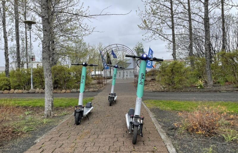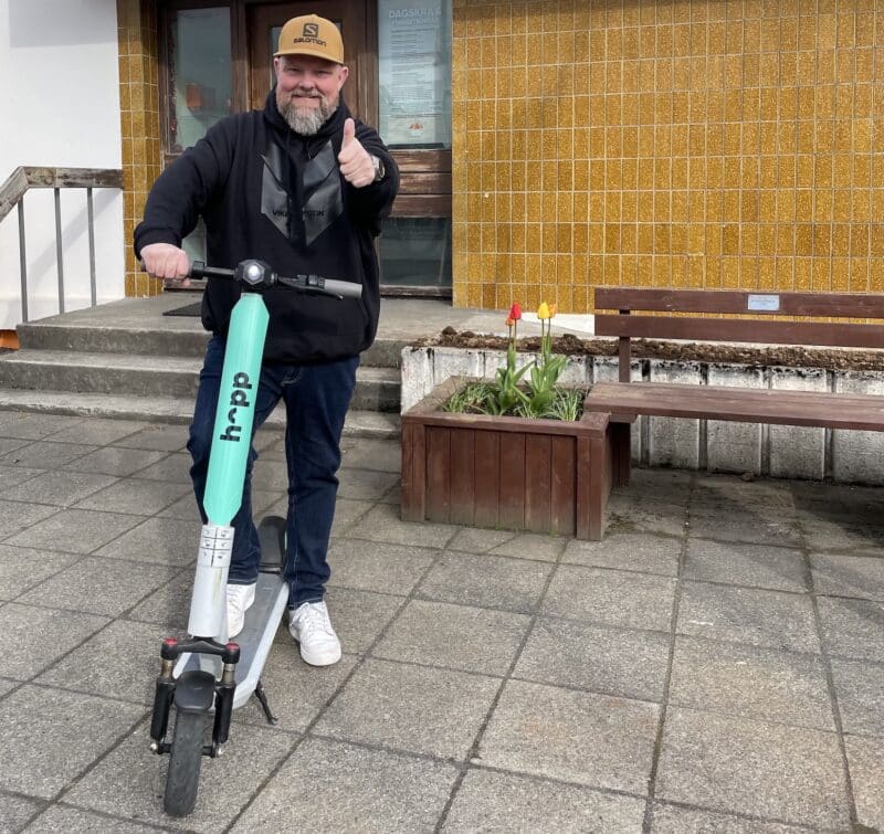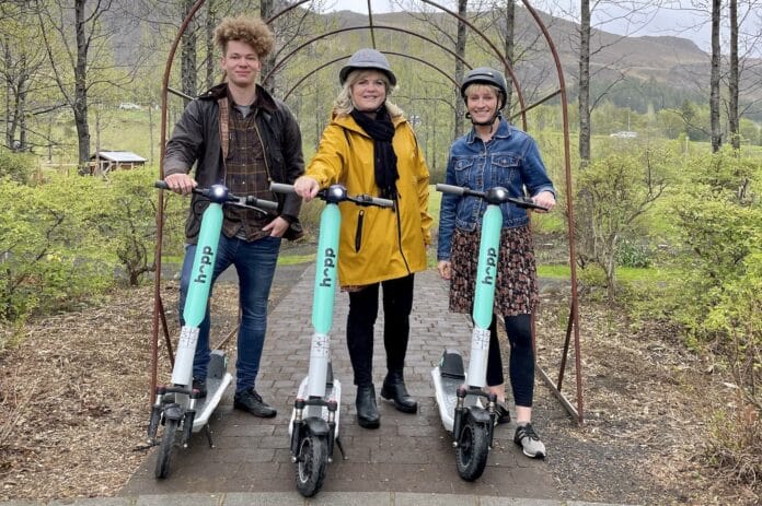 Rafskútuleigan Hopp hóf starfsemi sína í Hveragerði í gær en 40 rafskútum hefur verið komið fyrir í bæjarfélaginu.