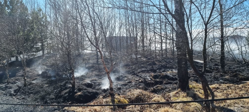 Þetta er annað útkallið í dag þar sem slökkva þarf eld í þurrum gróðri í Árnessýslu en í morgun var slökktur eldur við Kolgrafarhól í Grímsnesi. Brunavarnir Árnessýslu ítreka beiðni sína til fólks að fara varlega með eld og aðra hitagjafa utandyra í þessari þurrkatíð sem nú er.