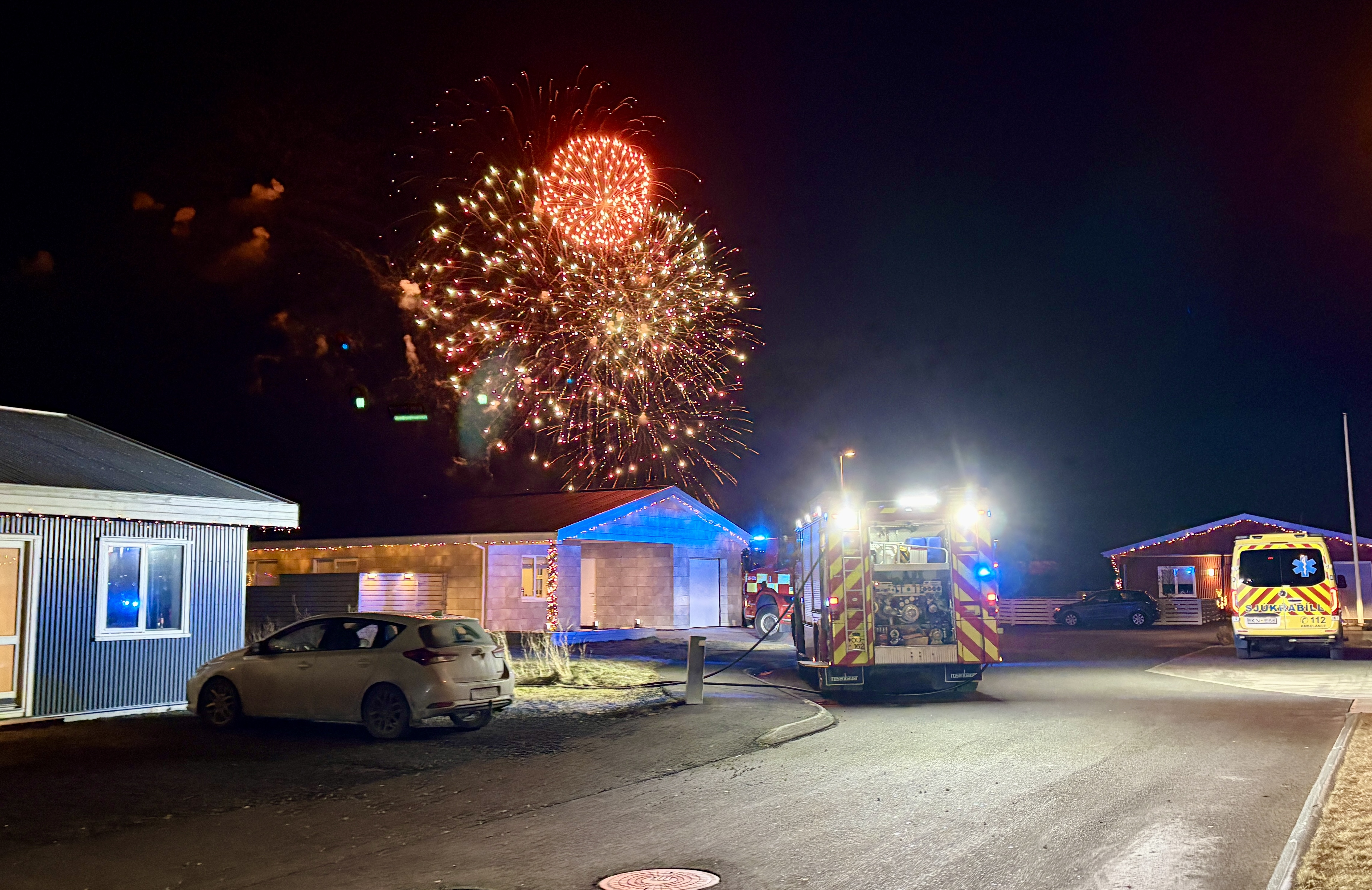 „Síðan var verið að kalla okkur til núna rétt í þessu til þess að slökkva í þrettándanbrennunni. Það er að hvessa og það er talsverð hætta á að glóð frá brennunni berist í gróður þarna á svæðinu,“ sagði Lárus ennfremur.