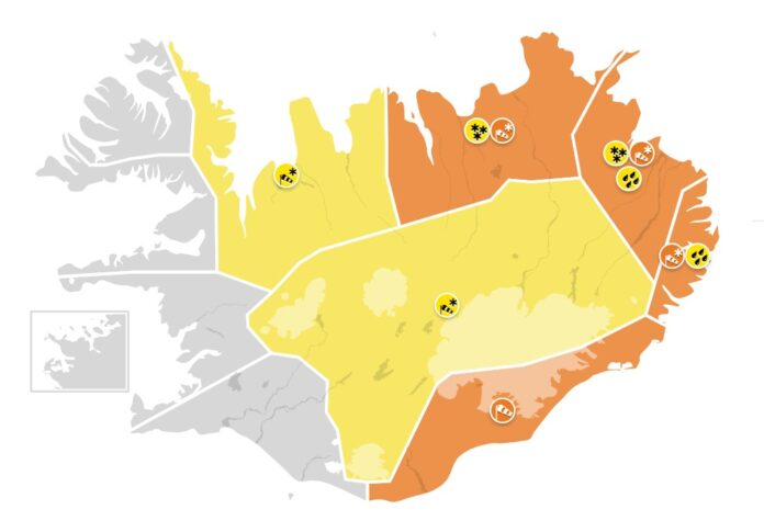 Veðurstofan hefur gefið út appelsínugula viðvörun fyrir Suðausturland, sem gildir frá klukkan 2 aðfaranótt þriðjudags til klukkan 15 á þriðjudag.