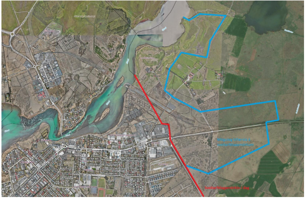 Á myndinni hér fyrir neðan sést nánar um hvaða landssvæði er að ræða en núverandi sveitarfélagamörk eru merkt með rauðri línu og blá lína sem sýnir mögulega tilfærslu.