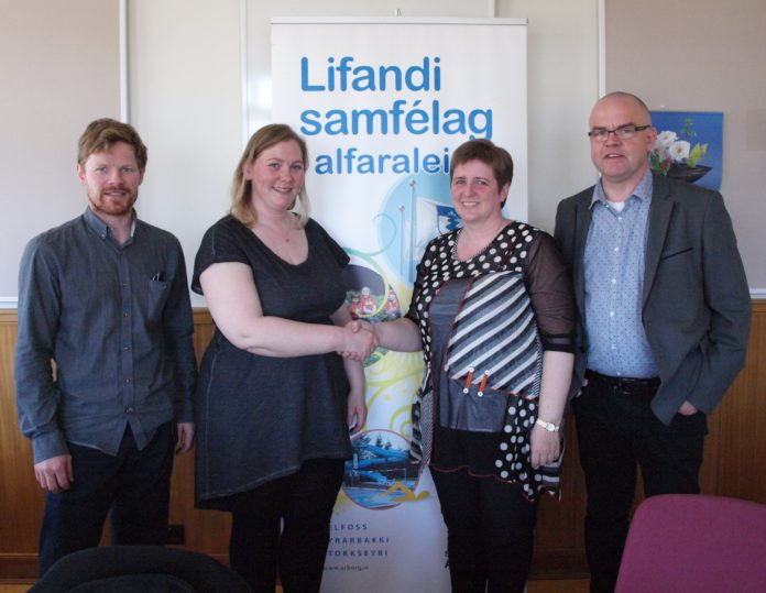 Ásta Stefánsdóttir, framkvæmdastjóri Árborgar og Sigríður Hafsteinsdóttir, formaður Leikfélags Selfoss undirrituðu samninginn ásamt Kjartani Björnssyni, fomanni íþrótta- og menningarnefndar og F. Ella Hafliðasyni, varaformanni Leikfélags Selfoss.