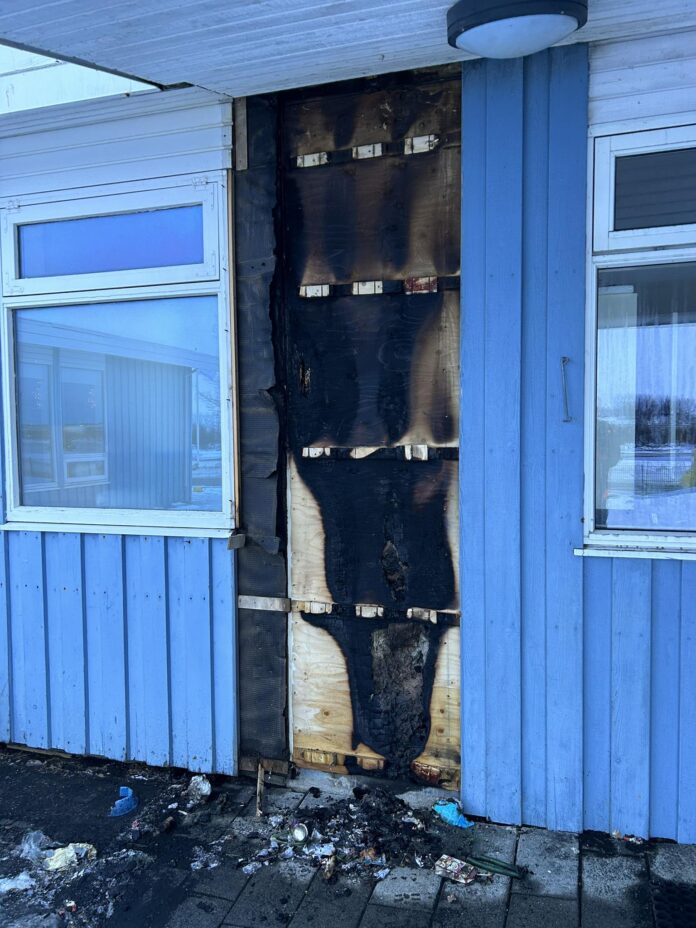 Nokkrar skemmdir urðu á húsinu en augljóst er á ummerkjum að stórtjón hefði orðið ef athugull starfsmaður hefði ekki verið á ferli og náð að slökkva eldinn.