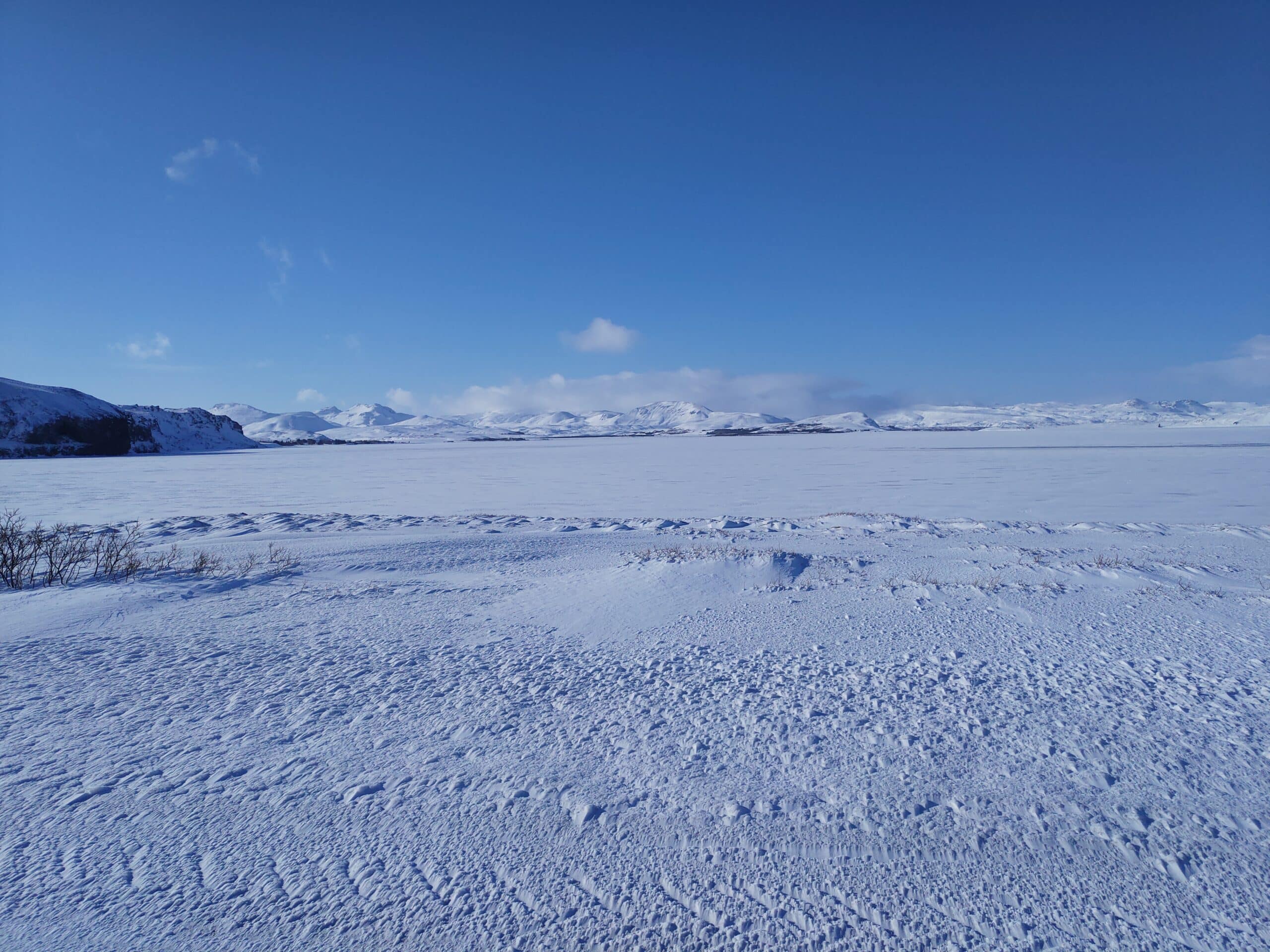 Aðstæður við vatnið voru skoðaðar í dag og eins og sést á meðfylgjandi mynd er vatnið nú ísi lagt og ekki að vænta að það opnist á næstunni.