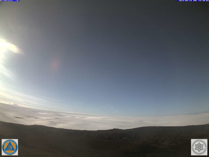 Fylgjast má hér með vefmyndavélinni á Grímsfjalli.