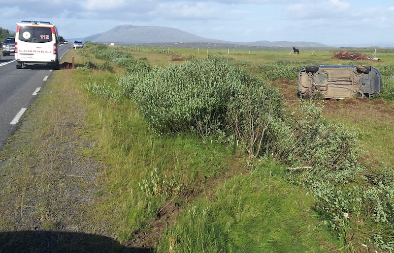FréttirBílvelta við Efsta-Dal 31. ágúst 2013 18:45Bílvelta varð á Biskupstungnabraut við Efsta-Dal í dag. Tveir erlendir ferðamenn voru í bílnum og sluppu þeir án teljandi meiðsla.Fólkið var flutt til læknisskoðunar á heilsugæslustöðina í Laugarási. Tildrög slyssins eru ekki kunn.