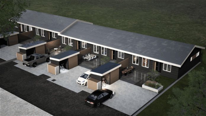 Á Flúðum verða öll húsin með litlum garði og eru allar íbúðir með tveimur bílastæðum og fullfrágenginni lóð með útigeymslu, ruslaskýlum og frístandandi hjólageymslu.