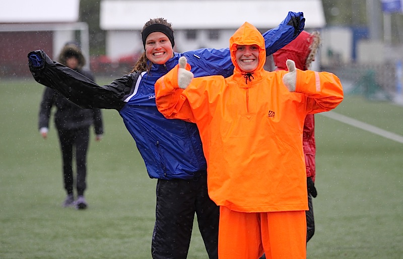 Björgunarsveitarmenn festu tjöldin og settu á þau farg.