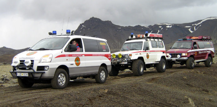 Björgunarhundaeigendur úr björgunarsveitum í Reykjavík aðstoðuðu við leit að björgunarhundi á Hellisheiði nú síðdegis.